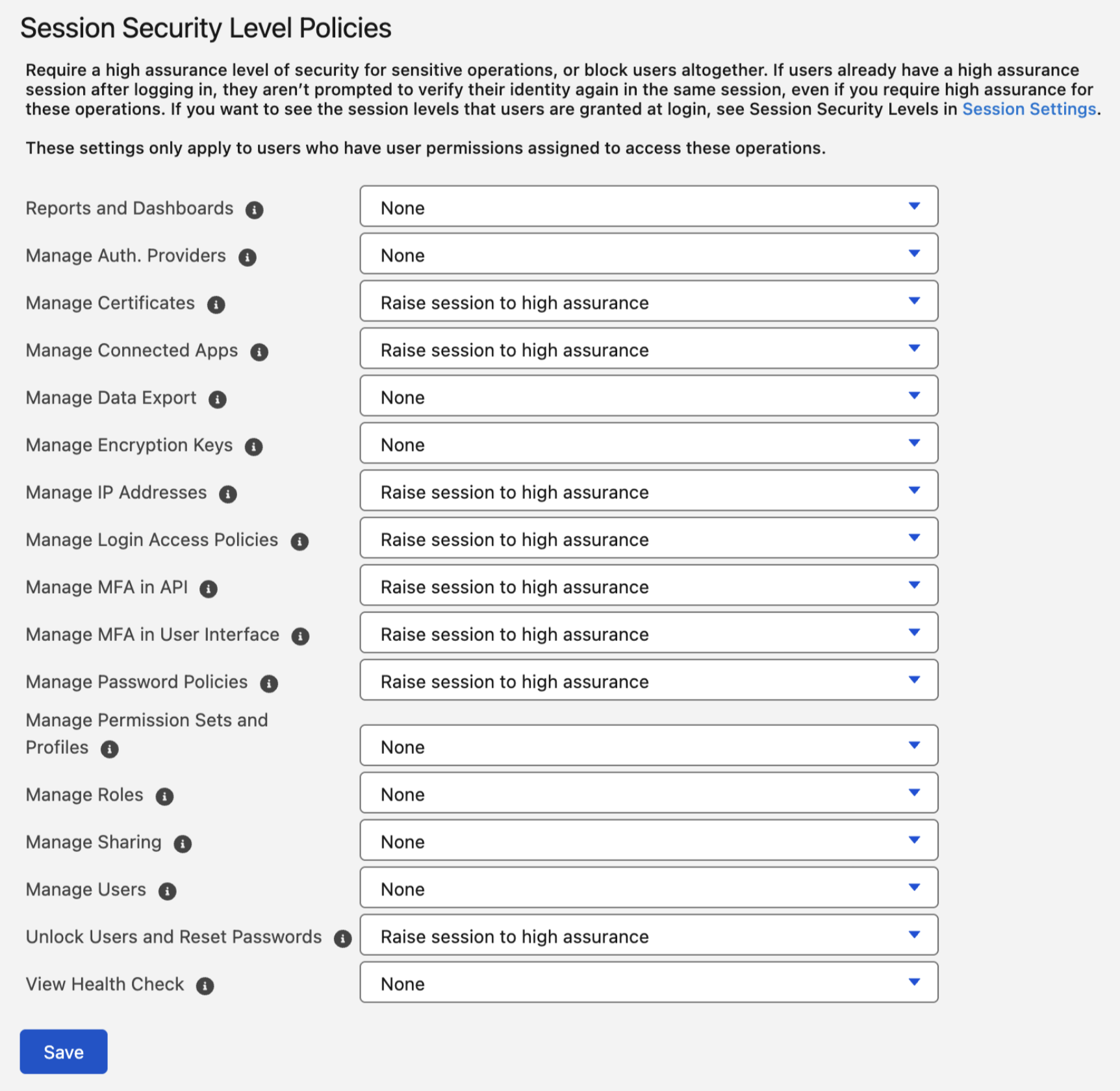 In order for Blue Canvas to sync properly, the following identity verification settings must be set to "None"
